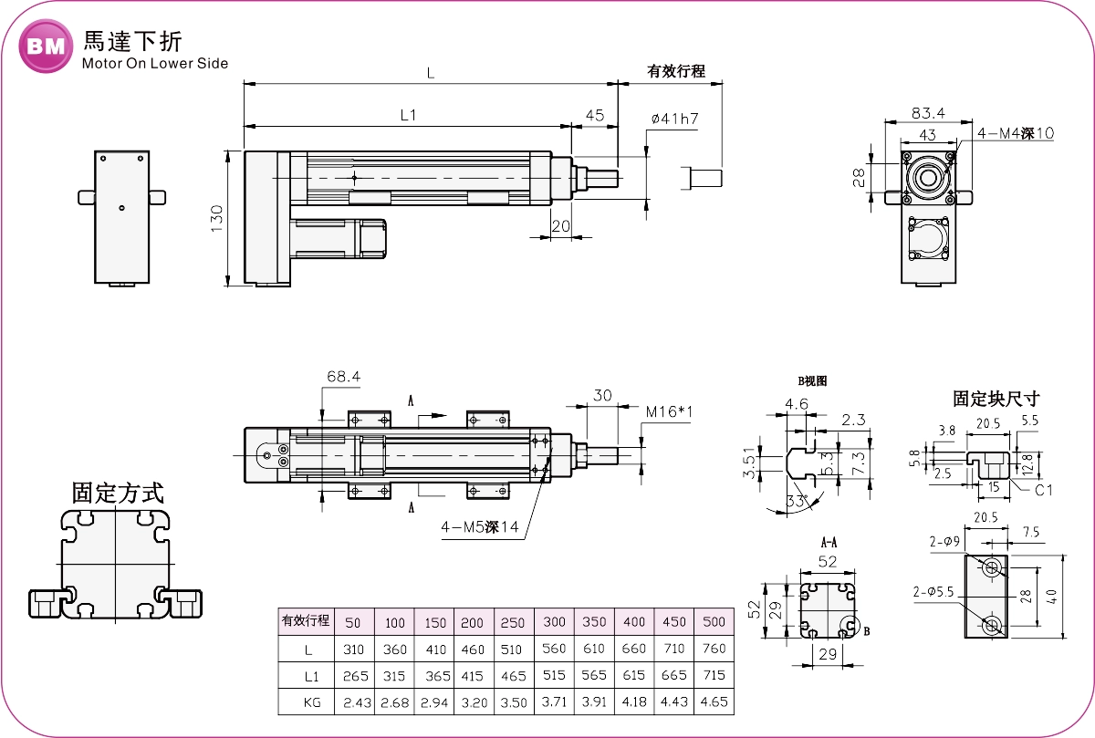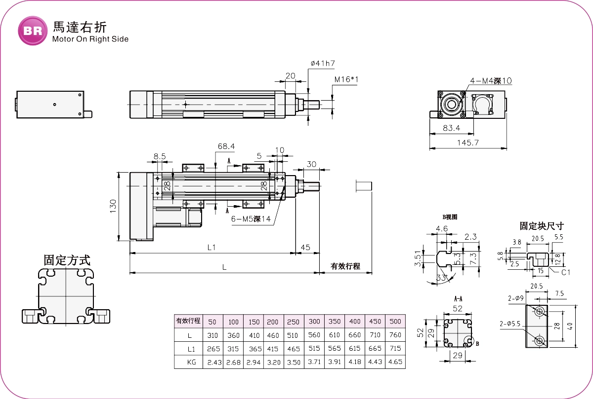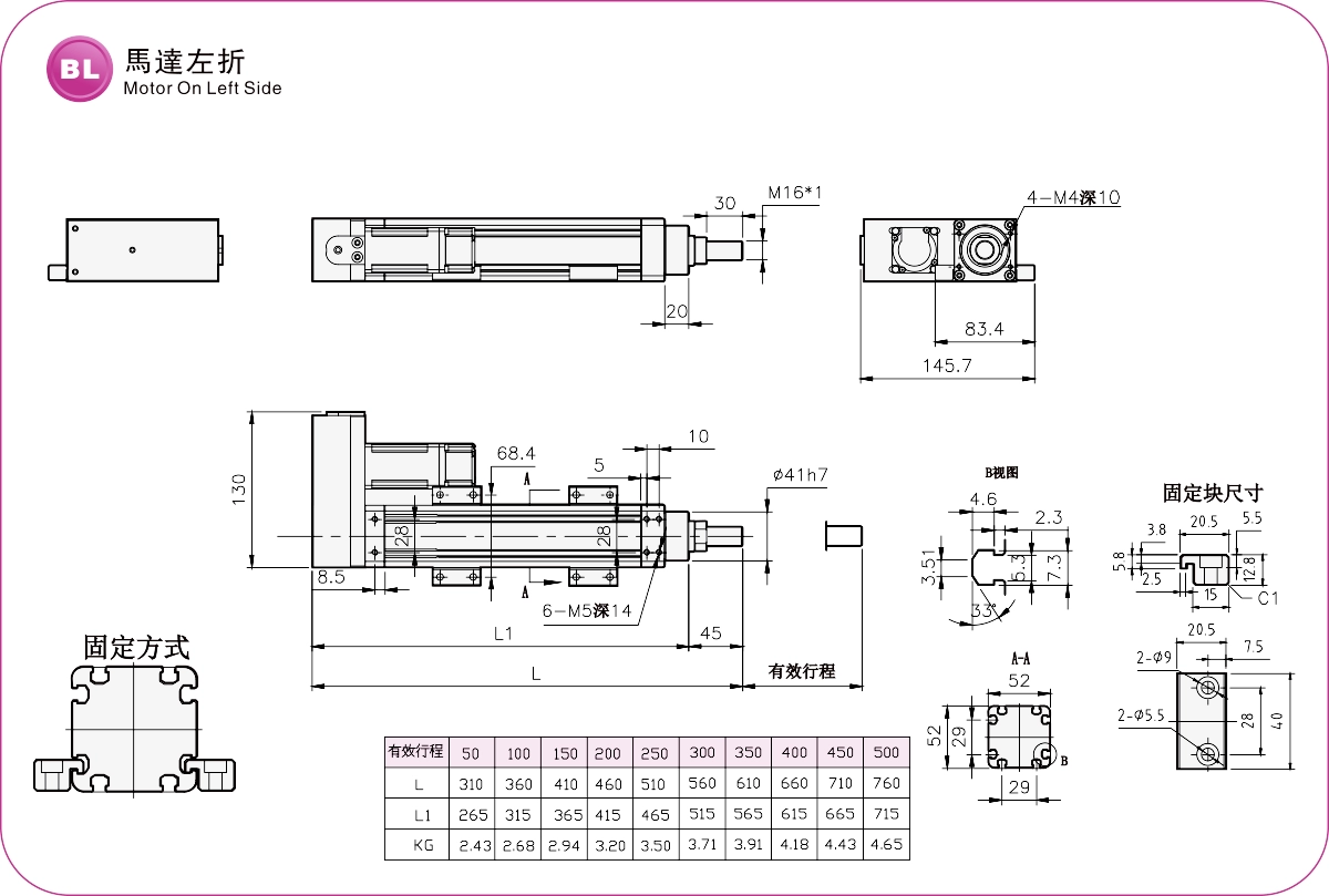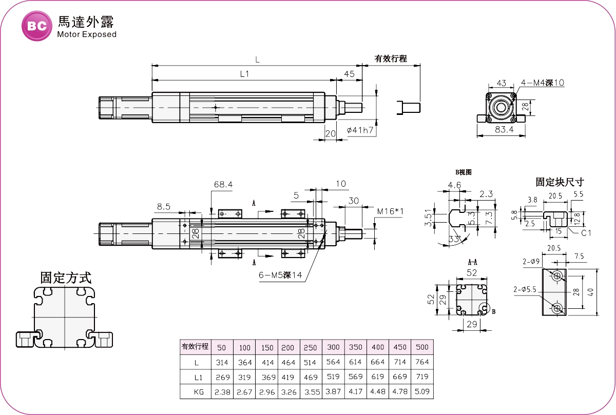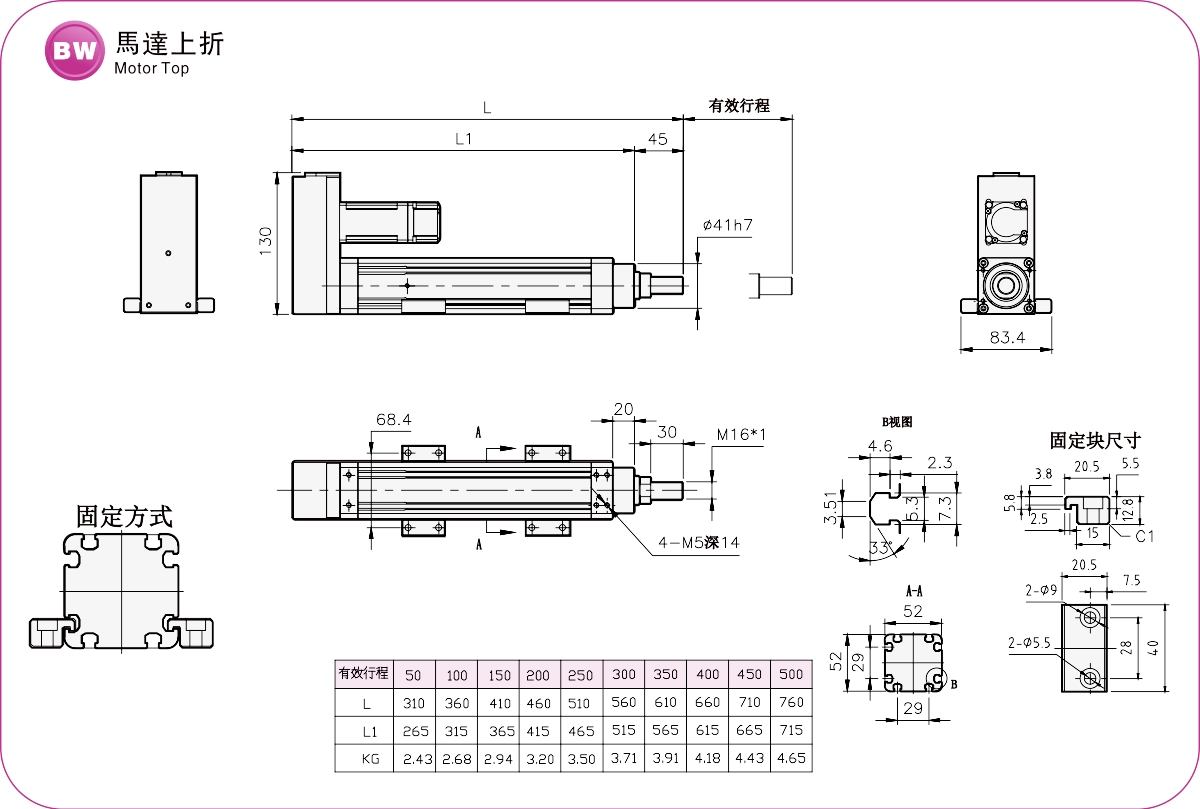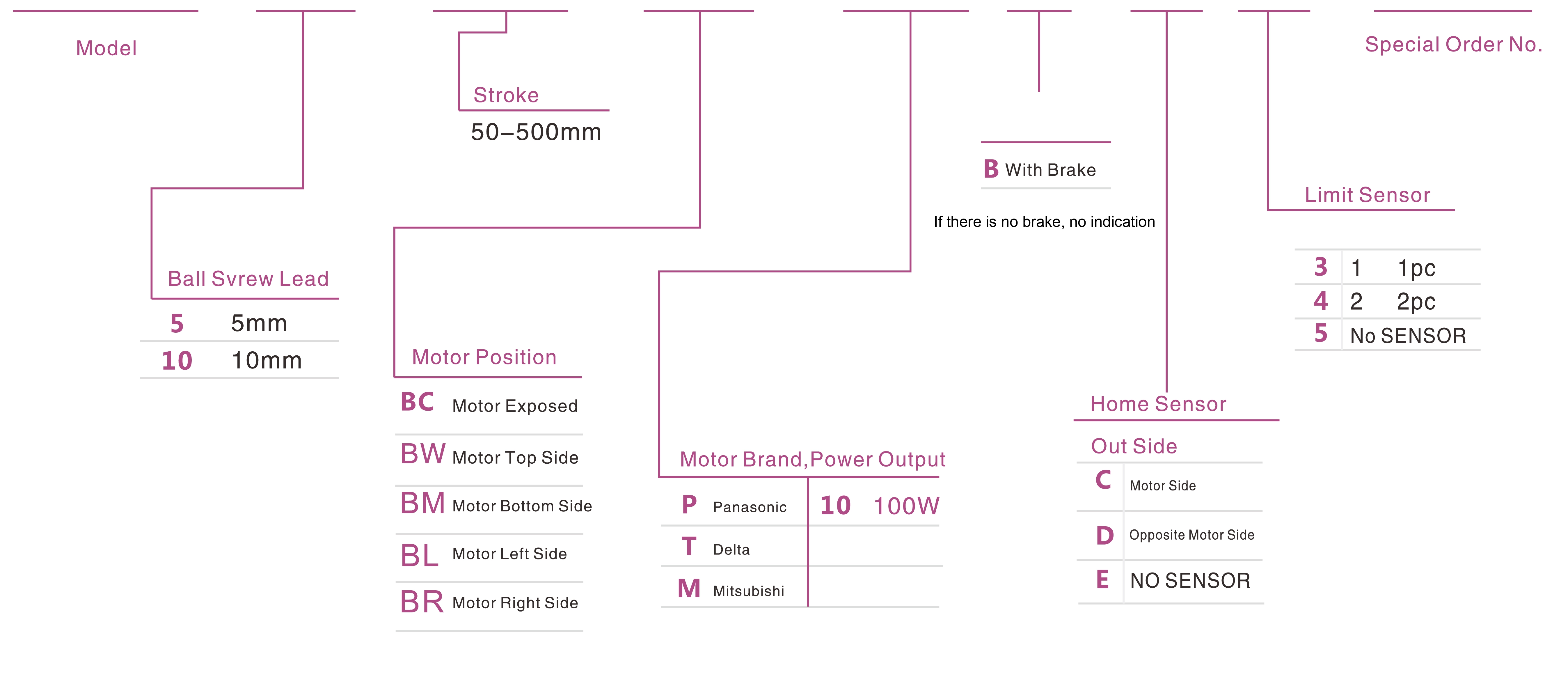 | Passo della corsa (mm) | 50-500 mm/passo 50 | |||