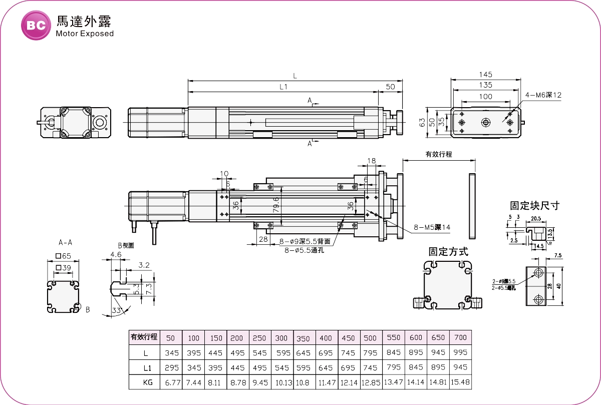 | Passo della corsa (mm) | 50-700 mm/passo 50 | |||||