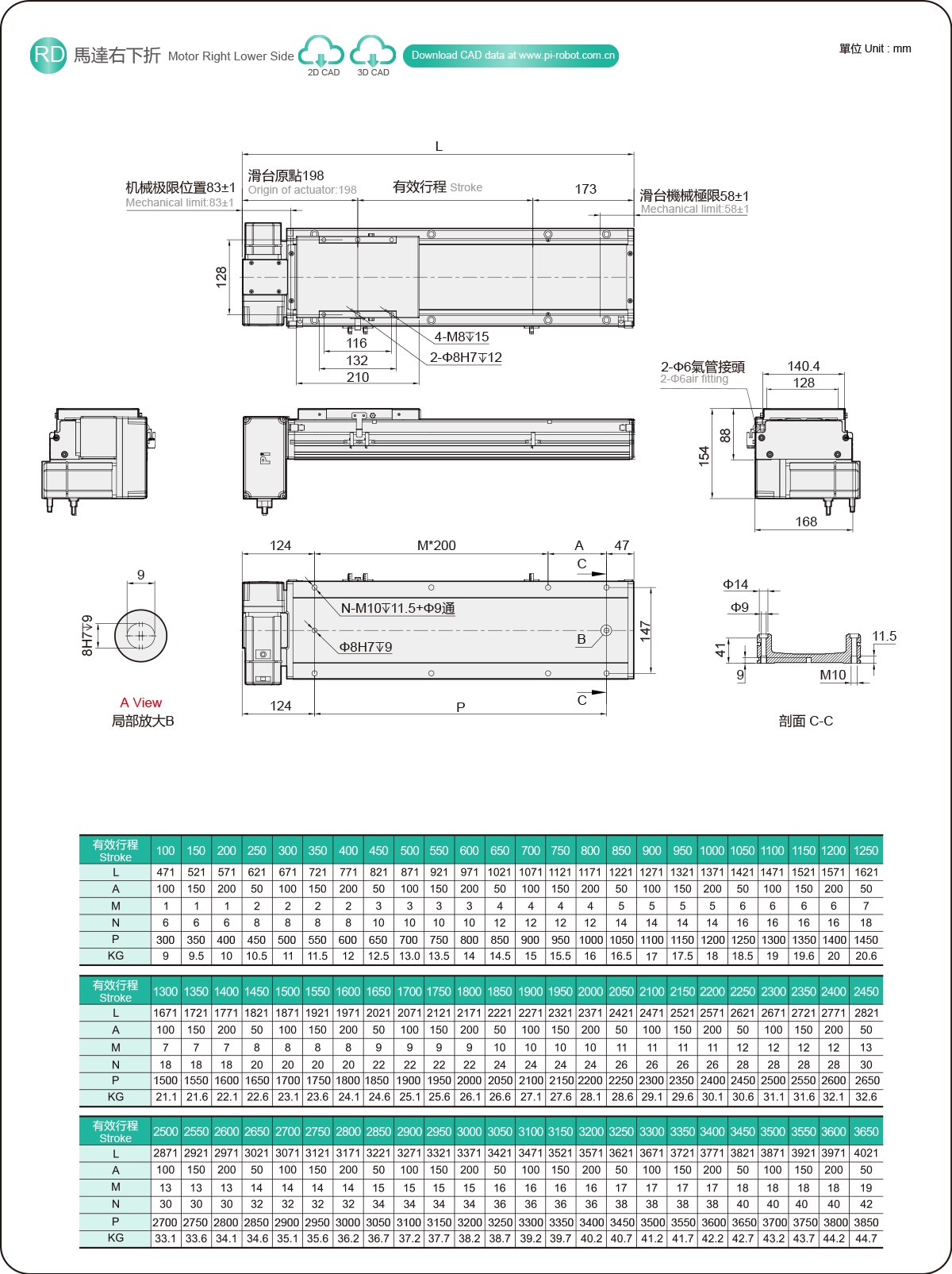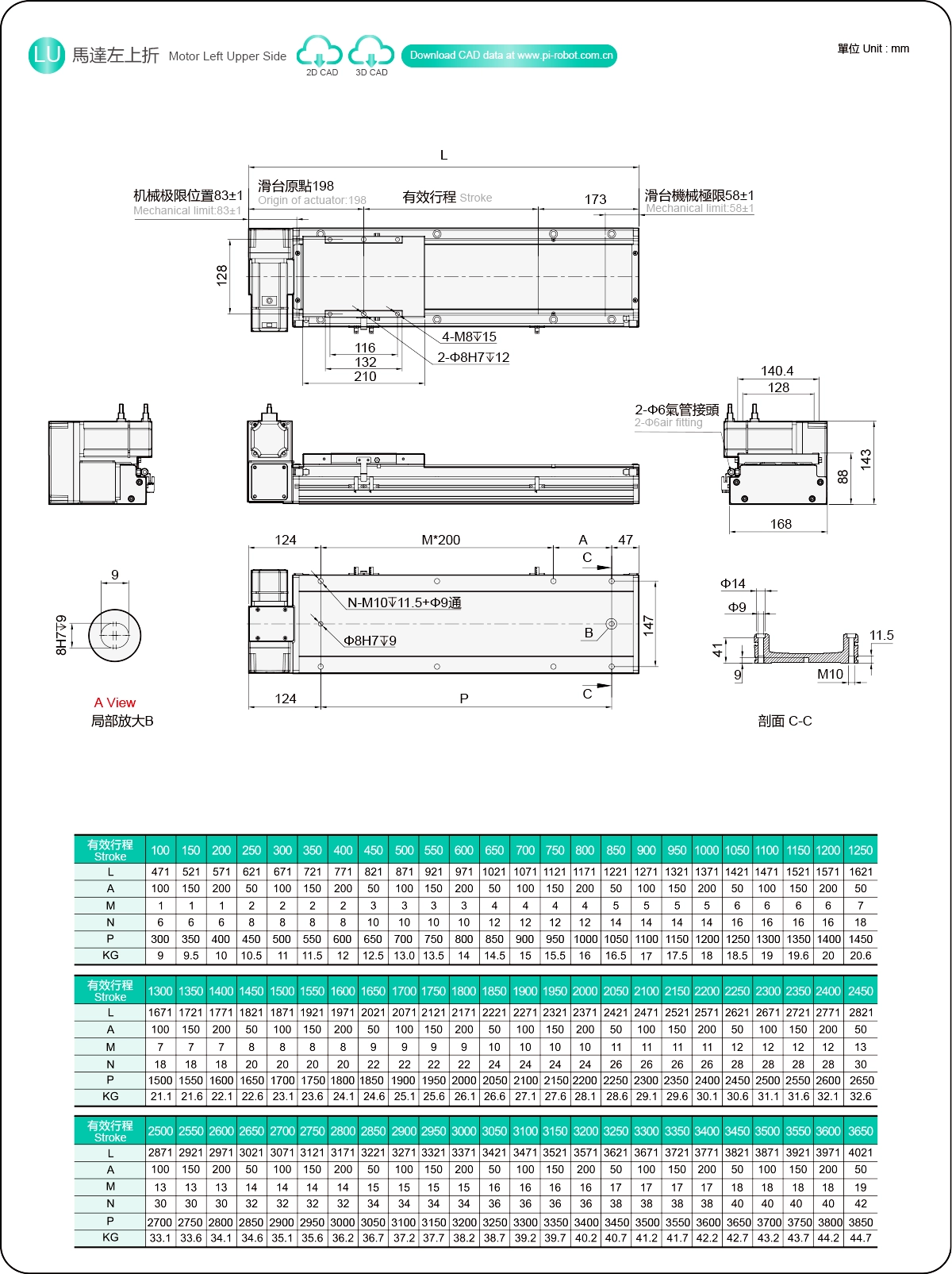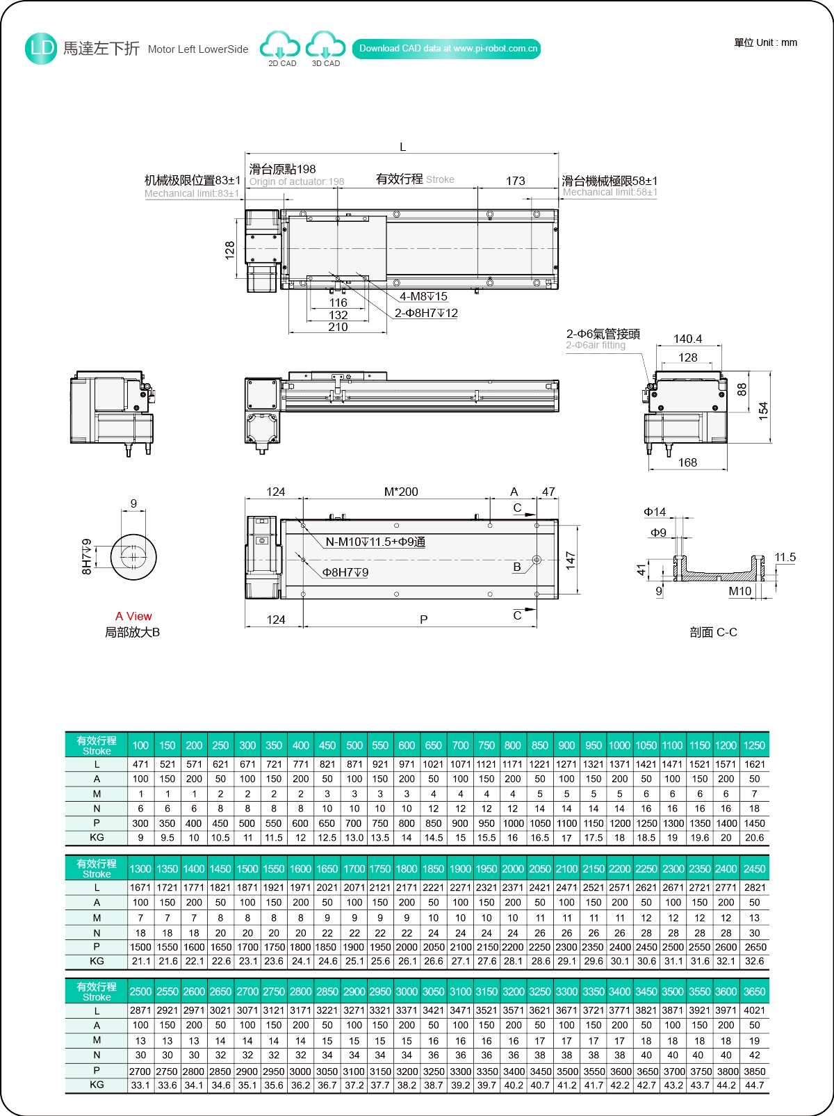 | Passo della corsa (mm) | Passo 100-3650 mm/50 mm | ||