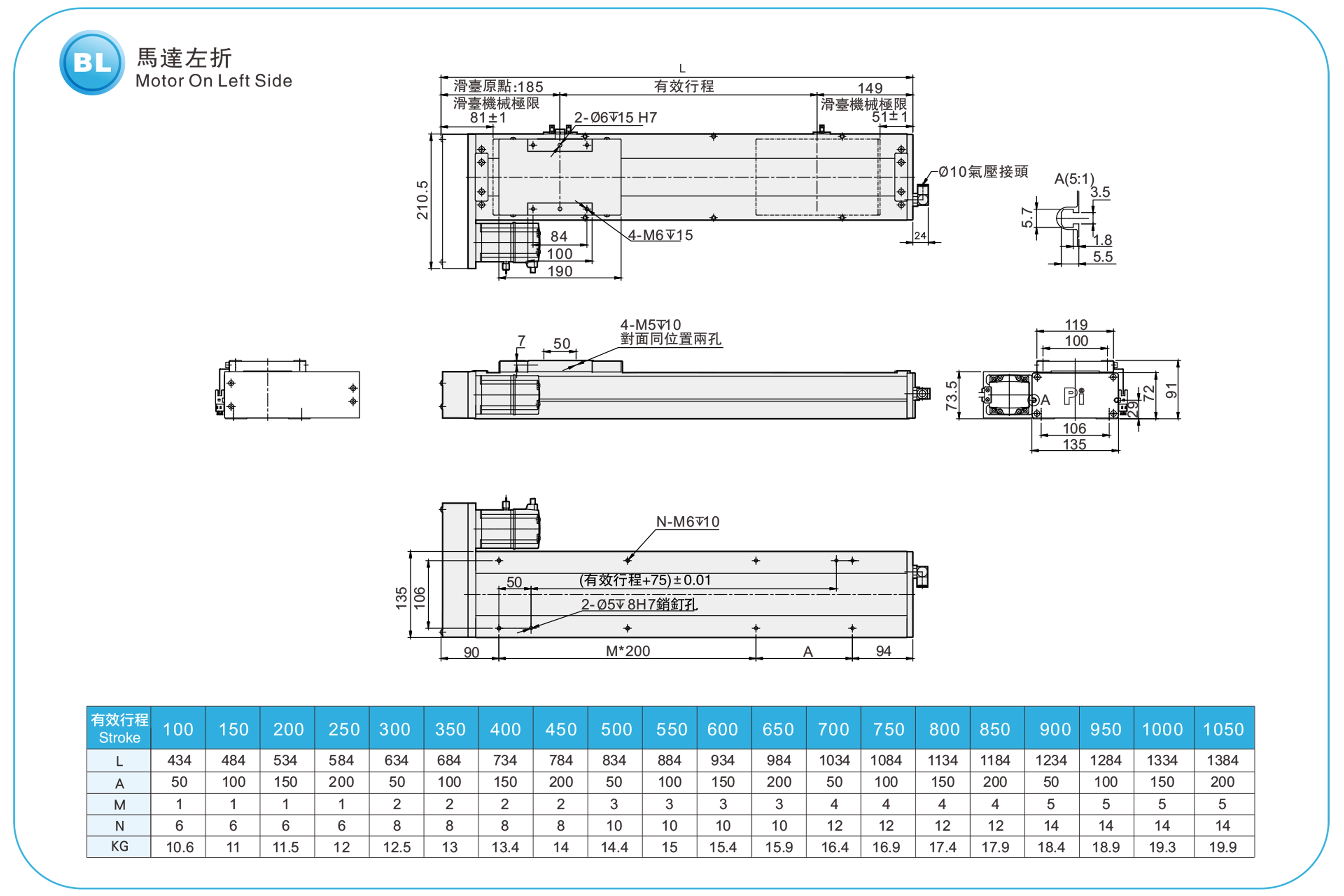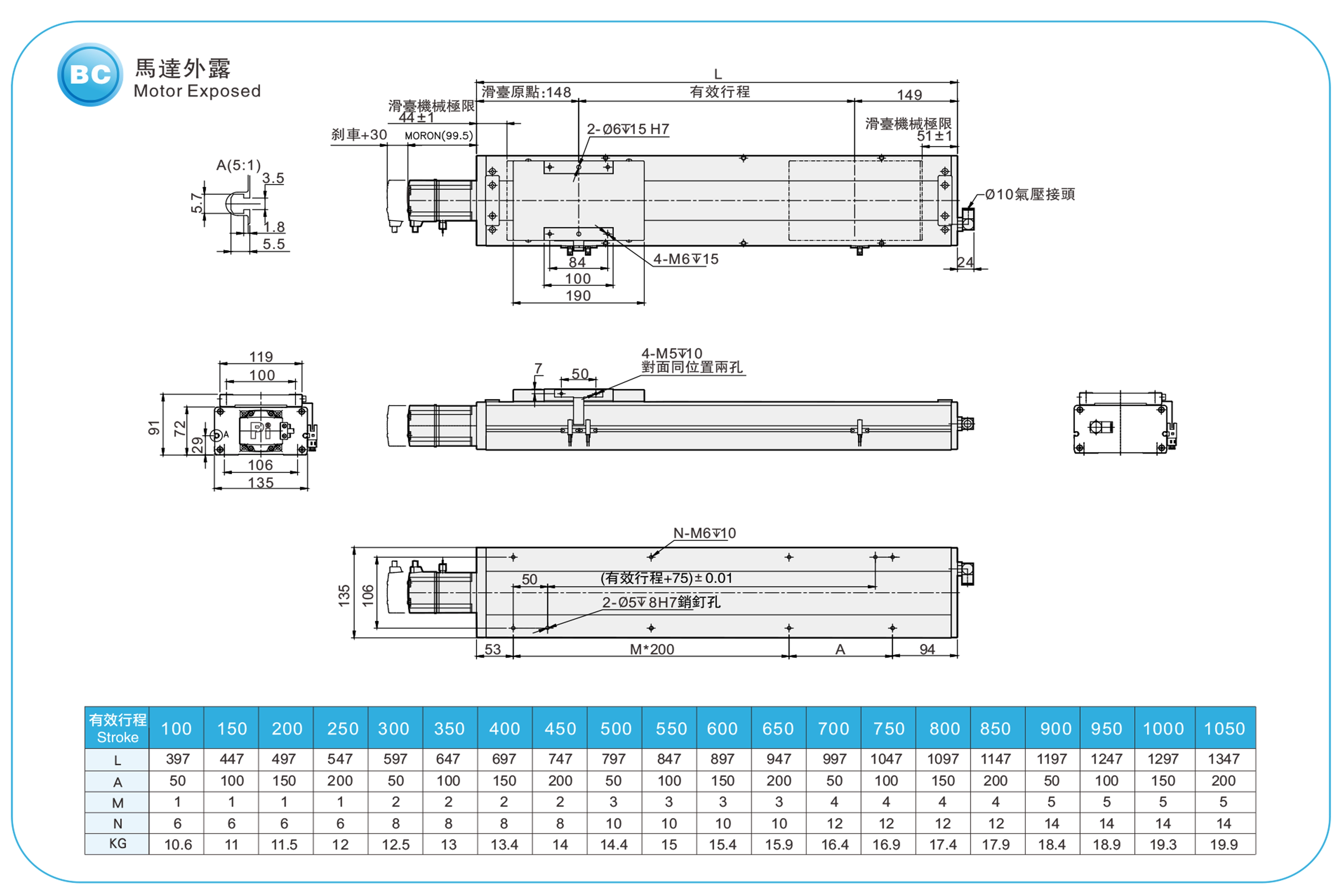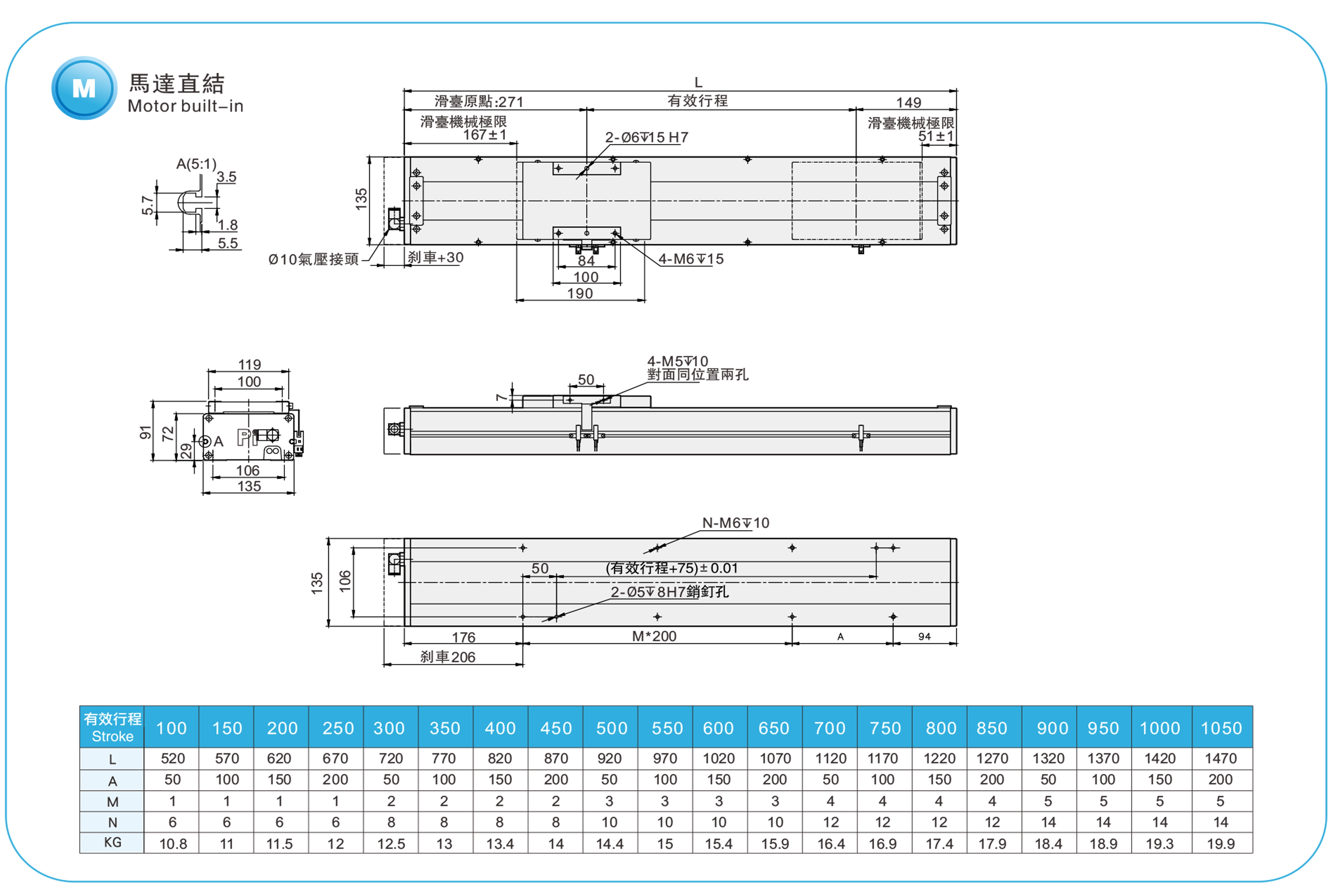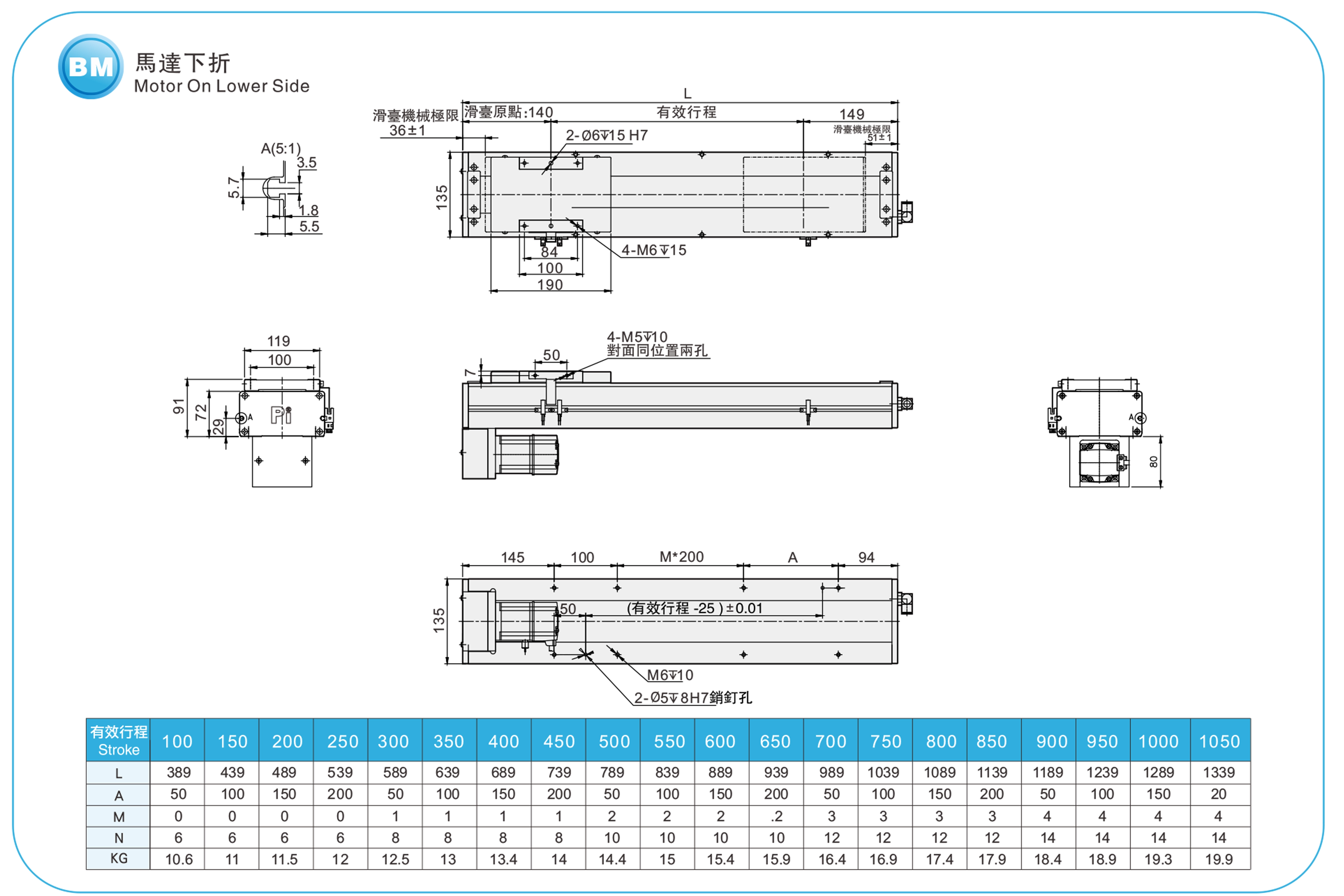 | Passo della corsa (mm) | Passo 100-1050 mm/50 mm | |||||