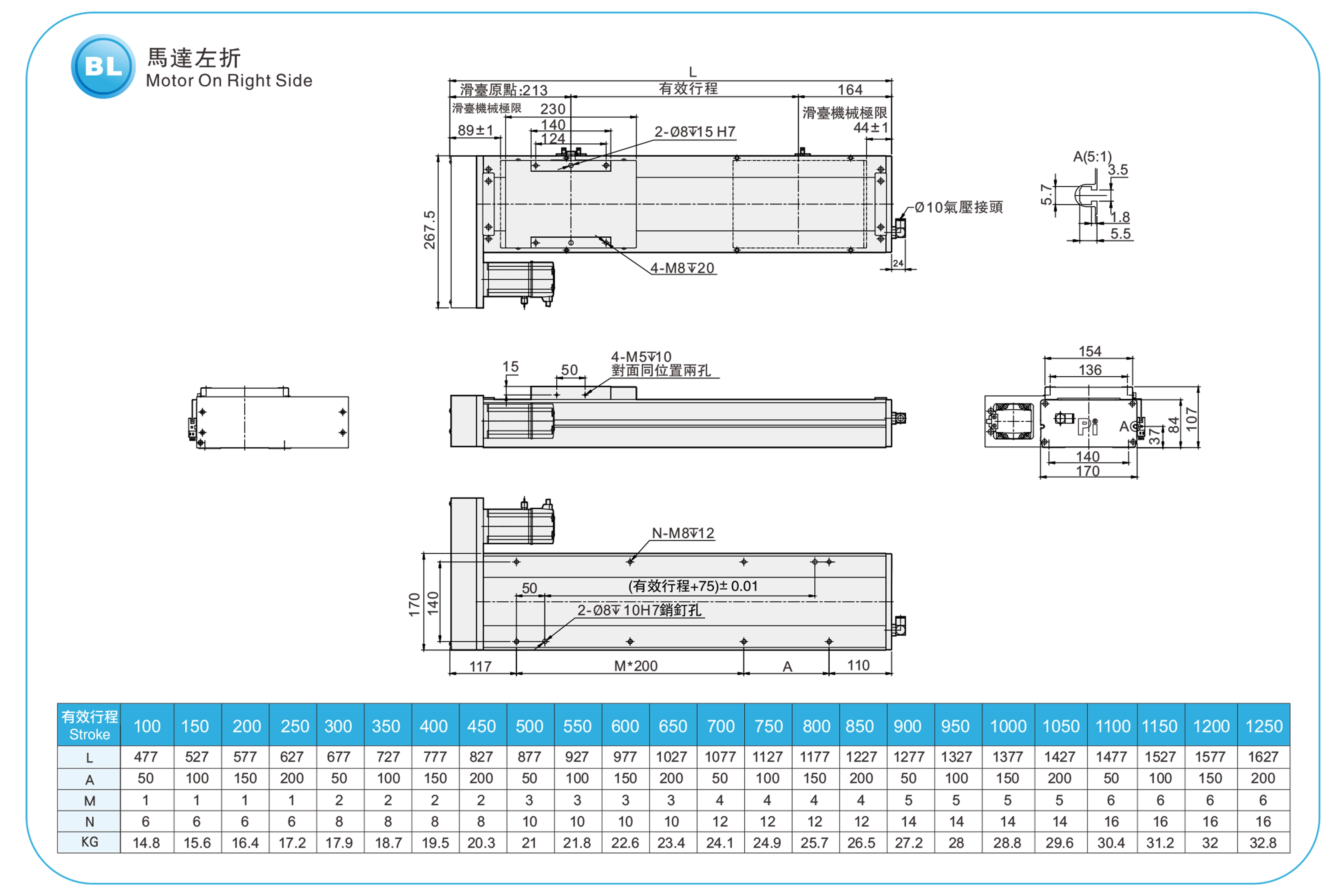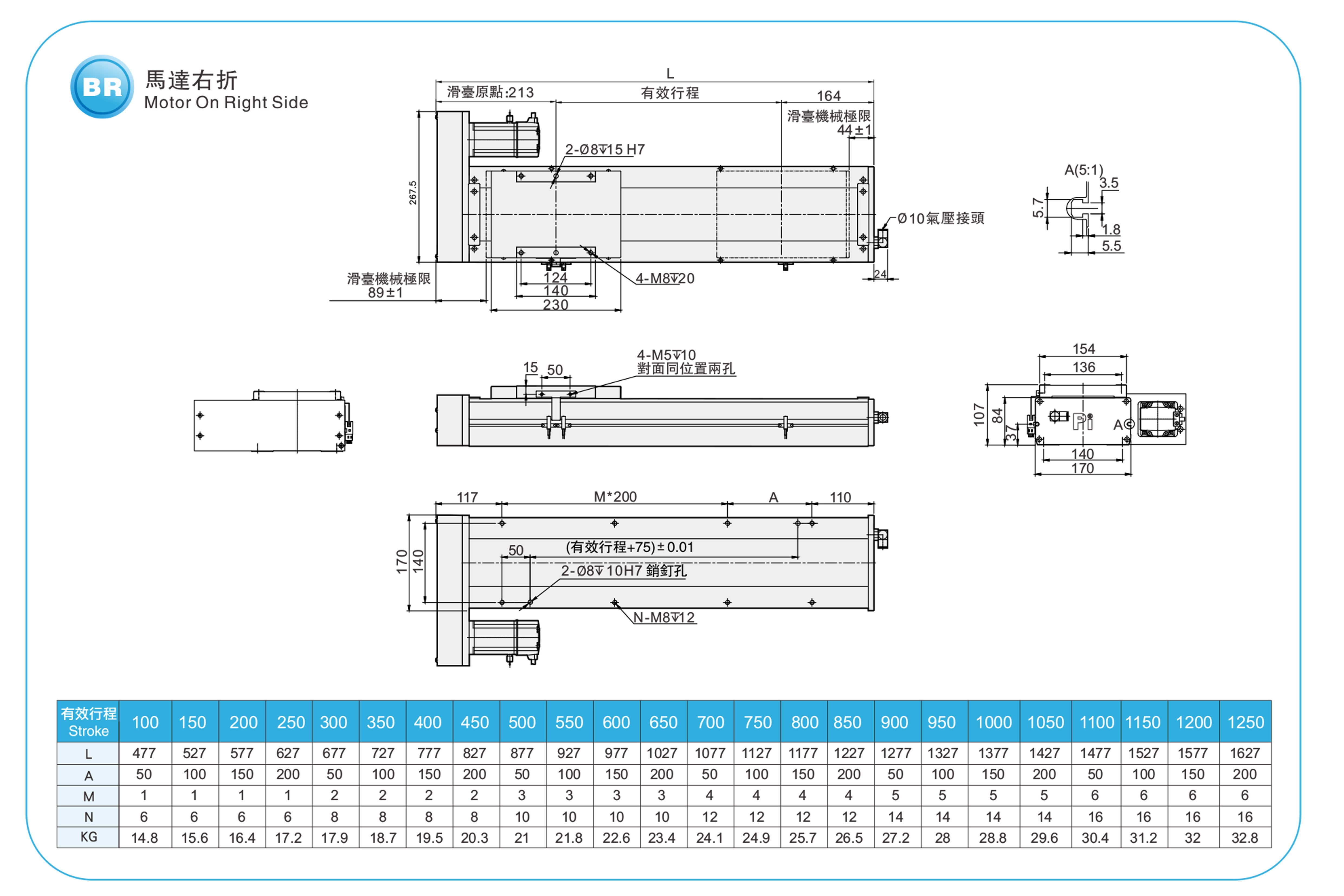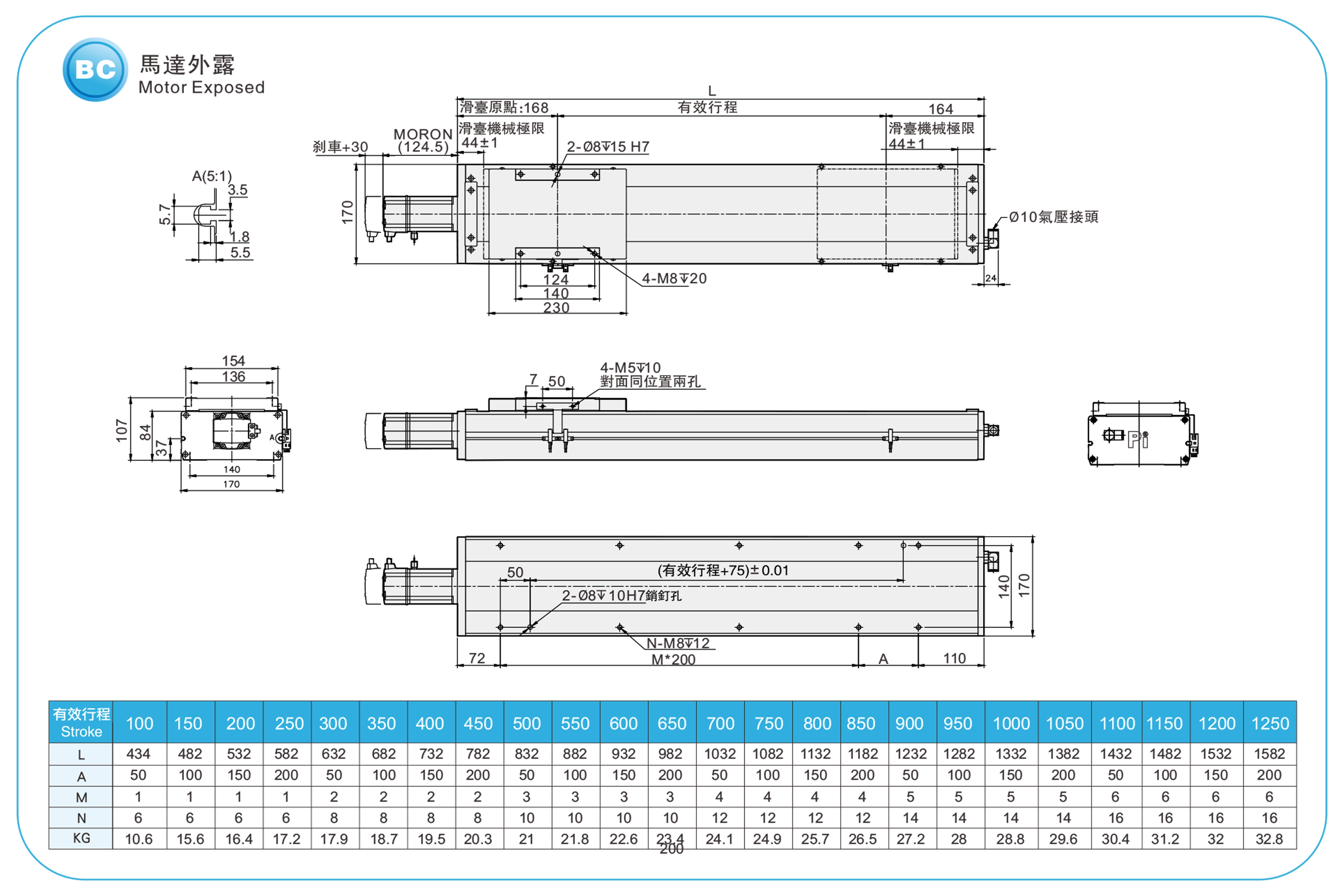 | Passo della corsa (mm) | Passo 100-1250 mm/50 mm | |||||