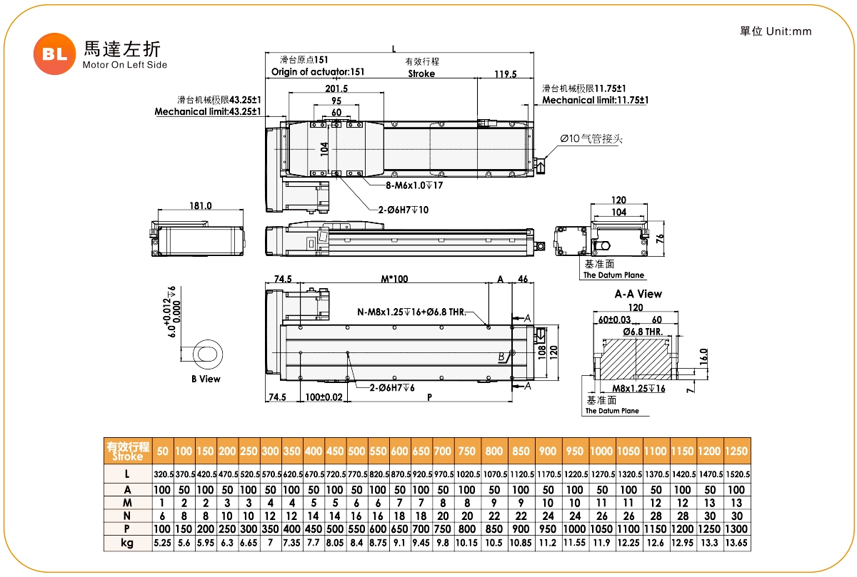 | Guida lineare ad alta rigidità (mm) | Attuatore a vite a sfere | |||||