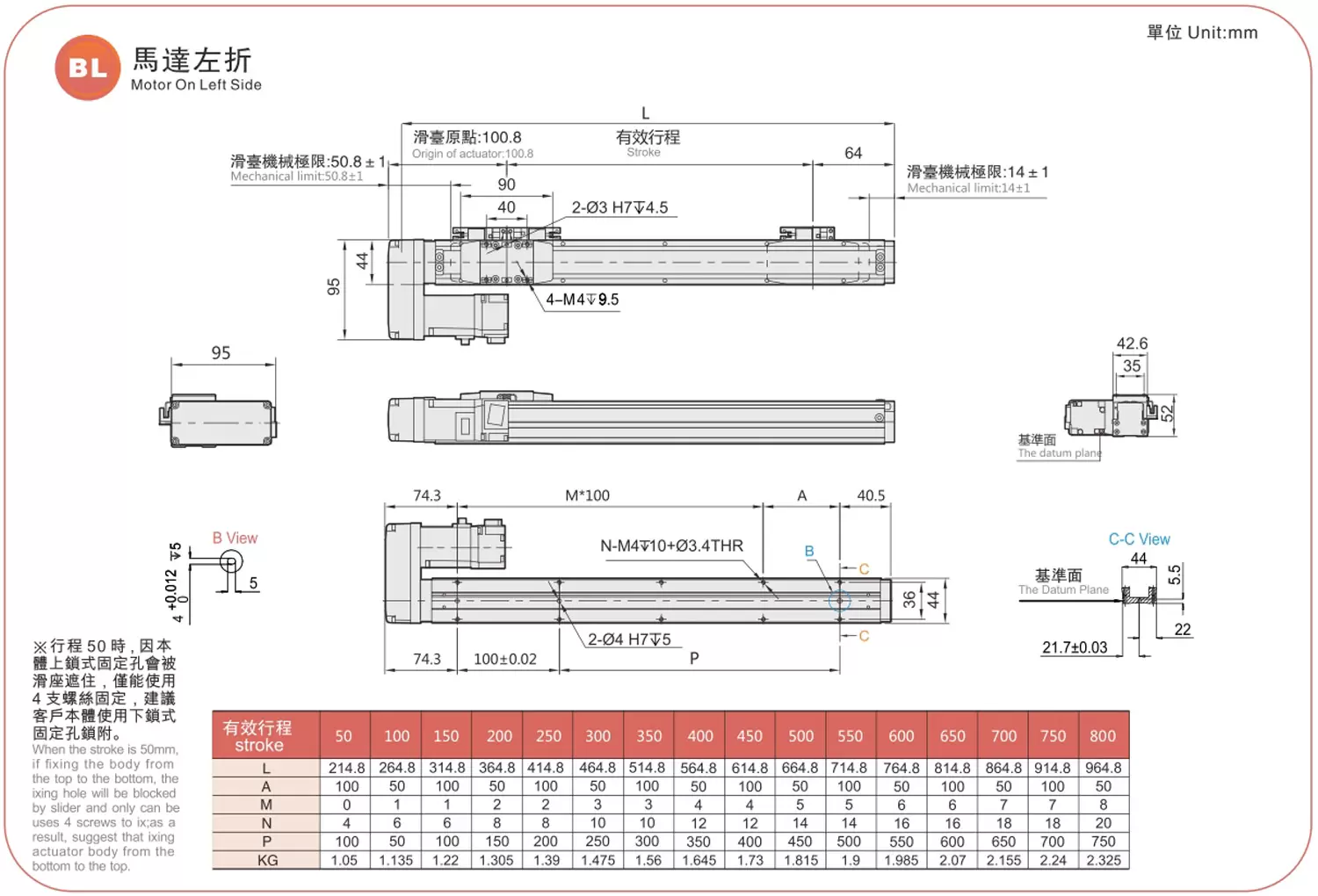 | Passo della corsa (mm) | Passo 50-800 mm/50 mm | ||||