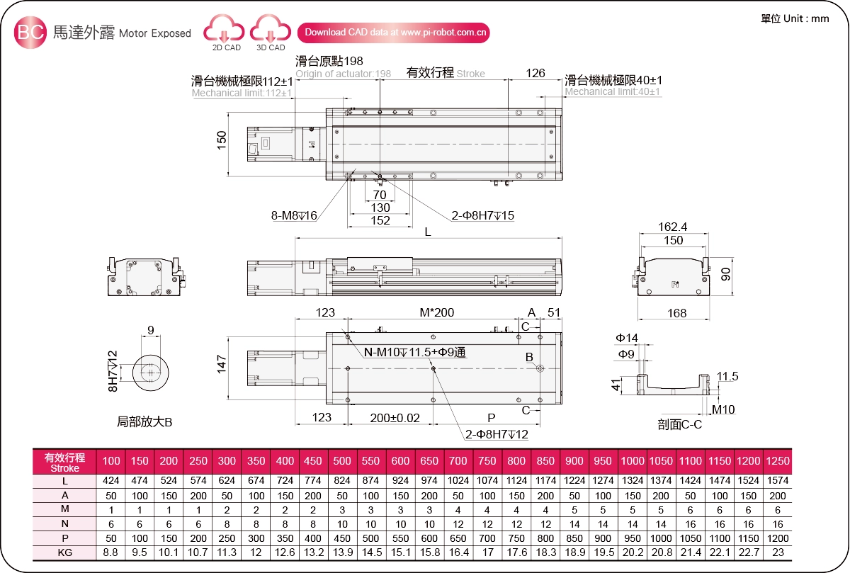 | Passo della corsa (mm) ※2 | Passo 100-1250 mm/50 mm | |||||