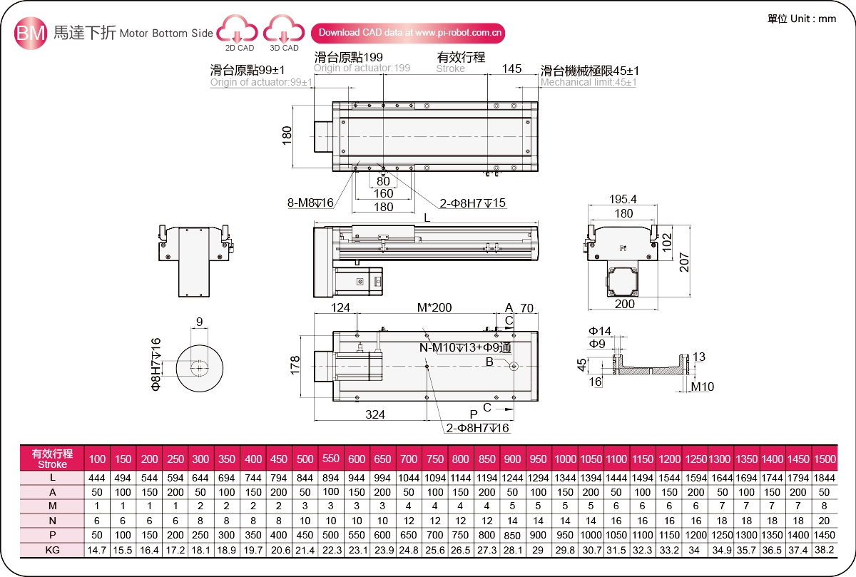 | Guida lineare ad alta rigidità (mm) | Attuatore a vite a sfere | |||||