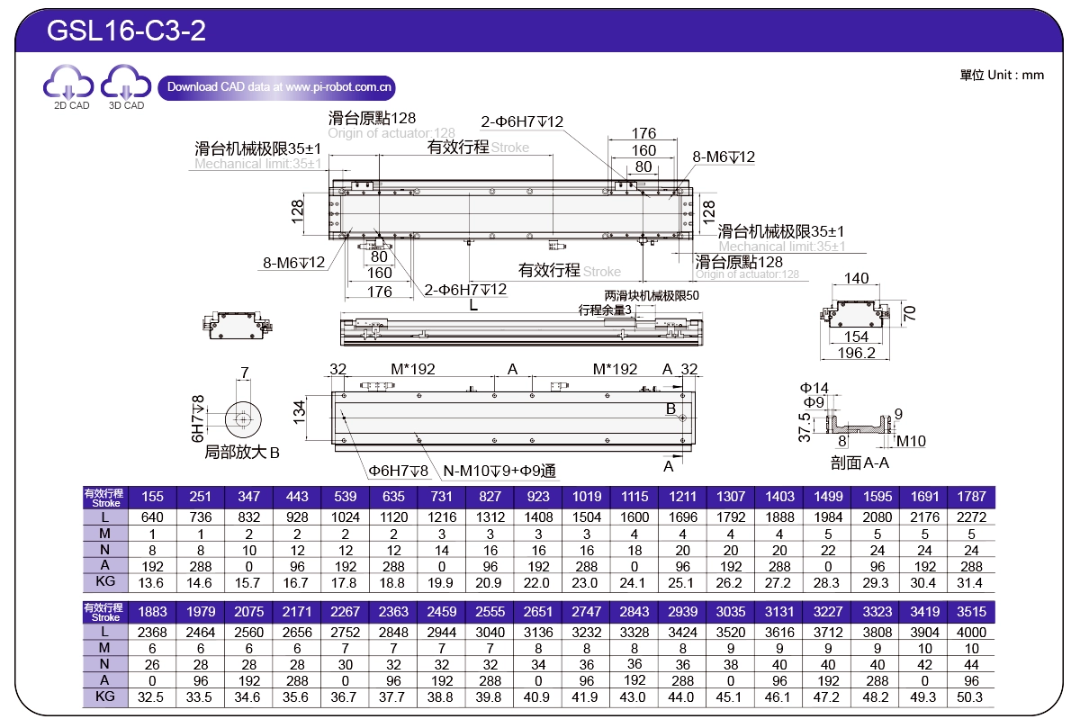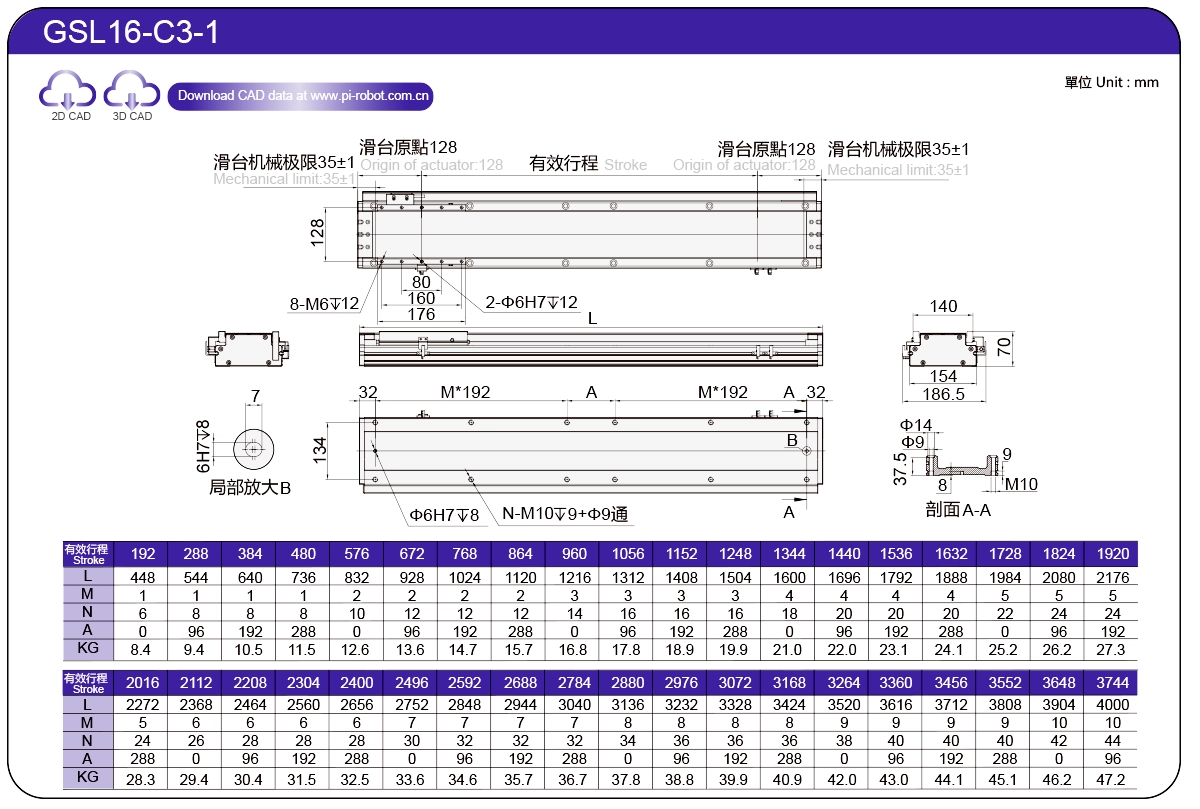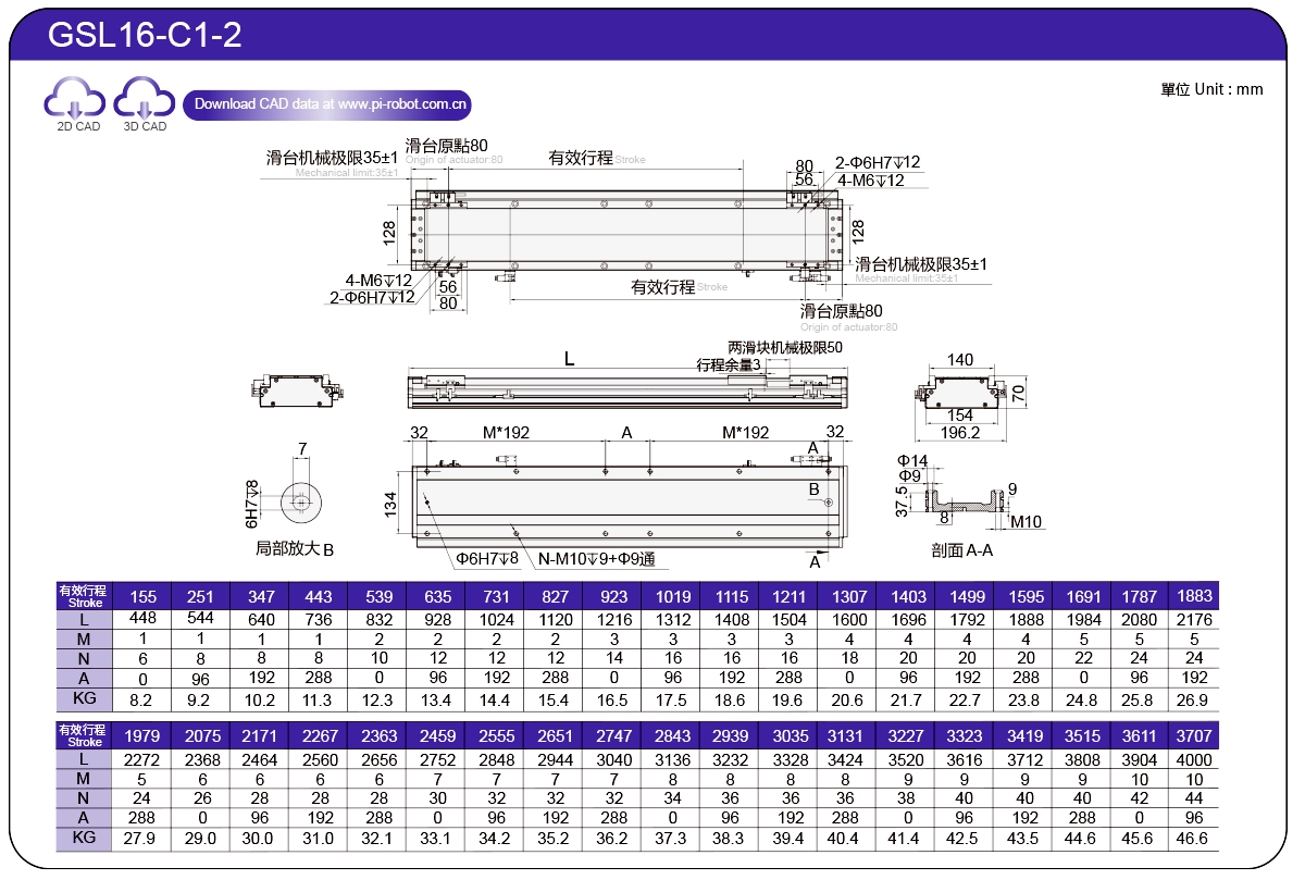 | Standard | Robot con motore lineare | GSL7 | P27-C1 | 75 | 65 | ±0,003 | 26 | 57 | 3.3 | 6 | 2500 |