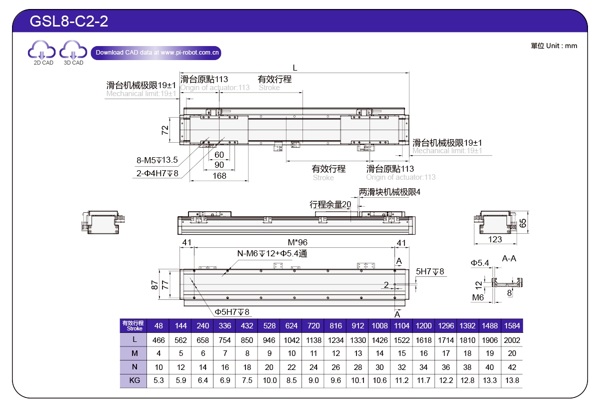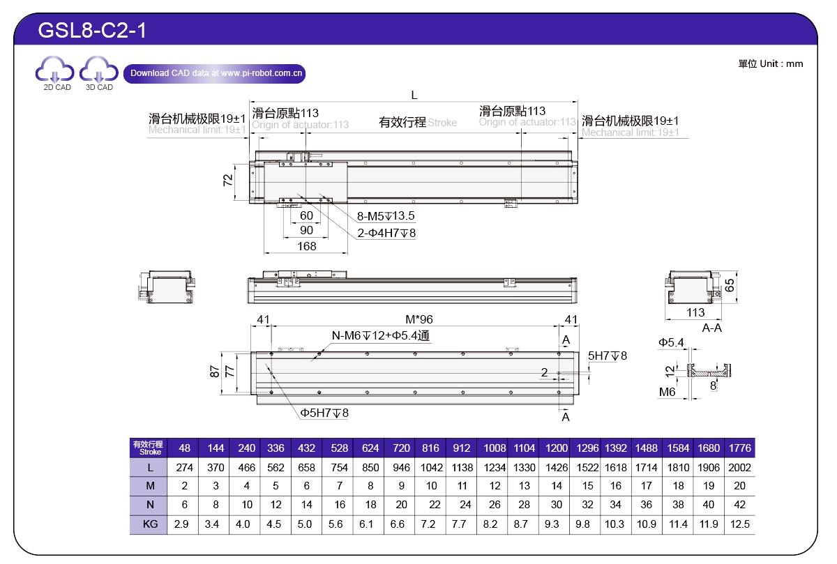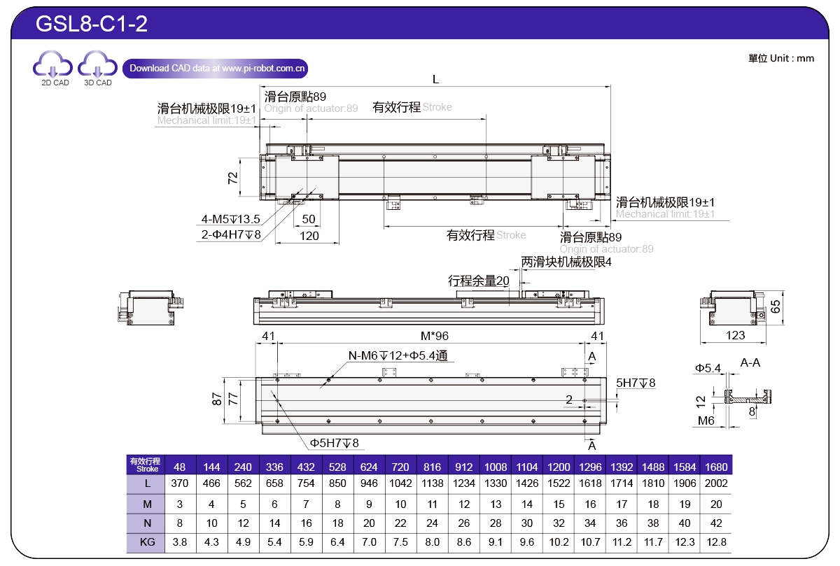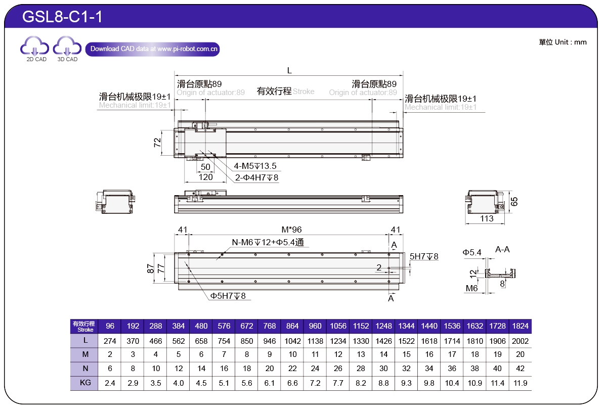 | Standard | Robot con motore lineare | GSL7 | P27-C1 | 75 | 65 | ±0,003 | 26 | 57 | 3.3 | 6 | 2500 |