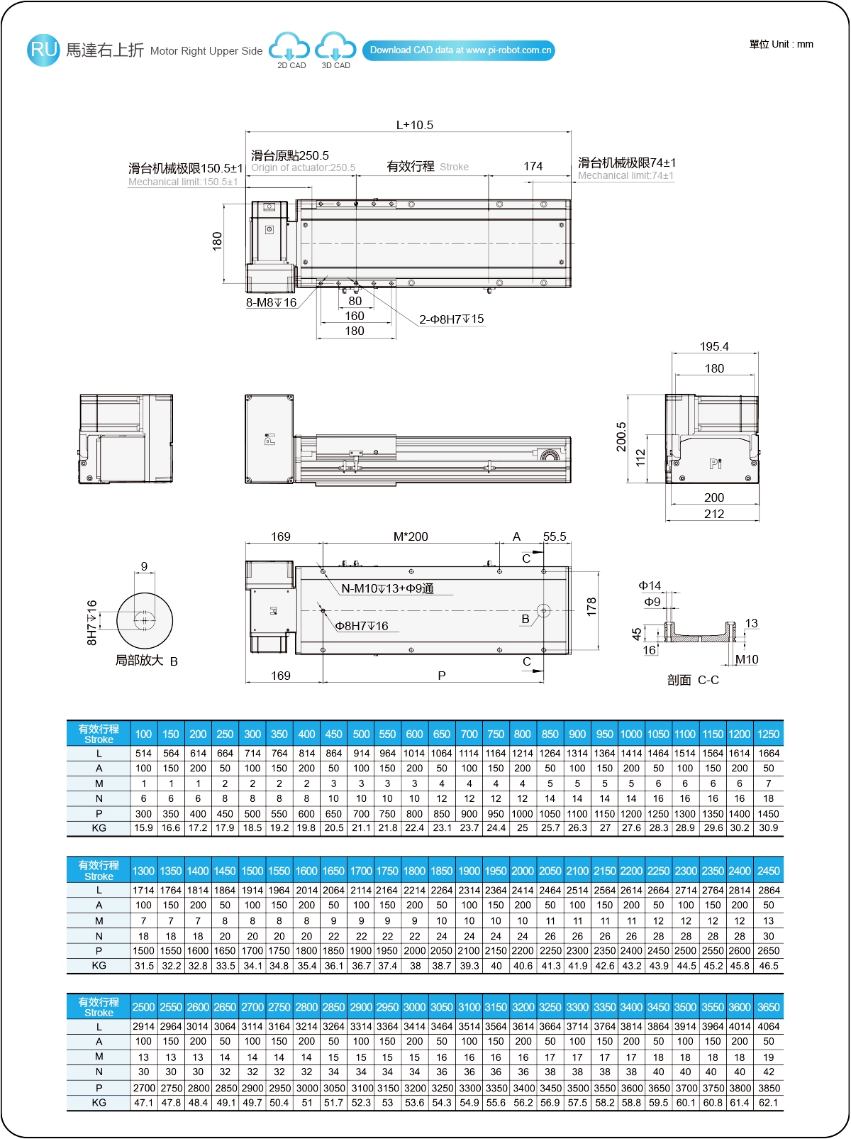 | Passo della corsa (mm) | Passo 100-3650 mm/50 mm | ||