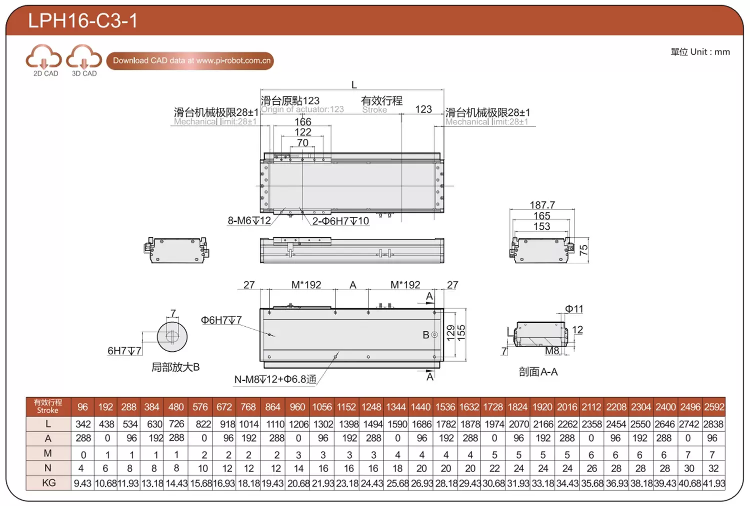 | Standard | Robot con motore lineare | LPD12 | P40-C2-S | 125 | 80 | ±0,003 | 80 | 176 | 3.3 | 20 | 2500 |
