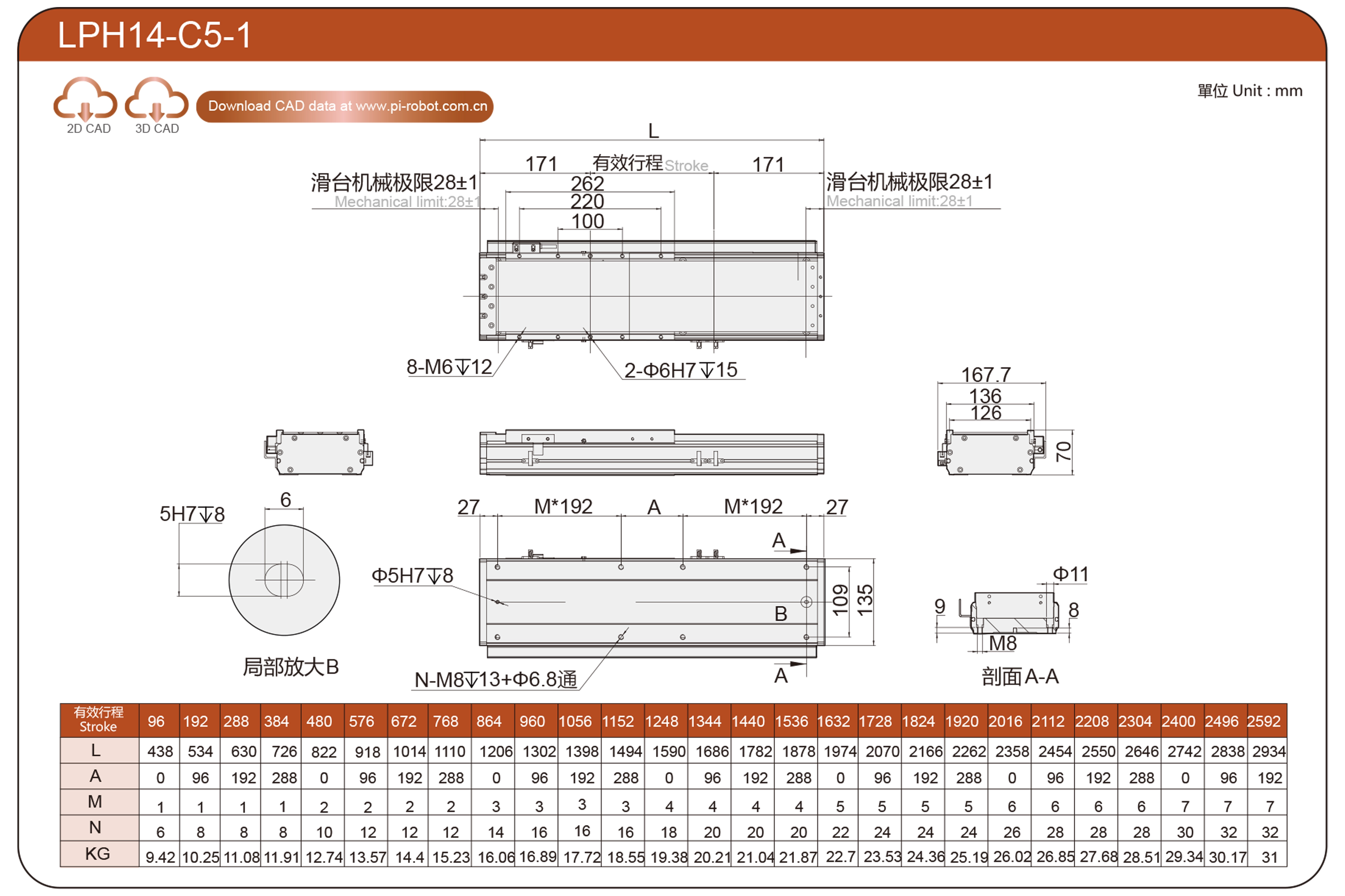 | Standard | Robot con motore lineare | LPH12 | P40-C2-S | 125 | 70 | ±0,003 | 80 | 176 | 3.3 | 20 | 2500 |