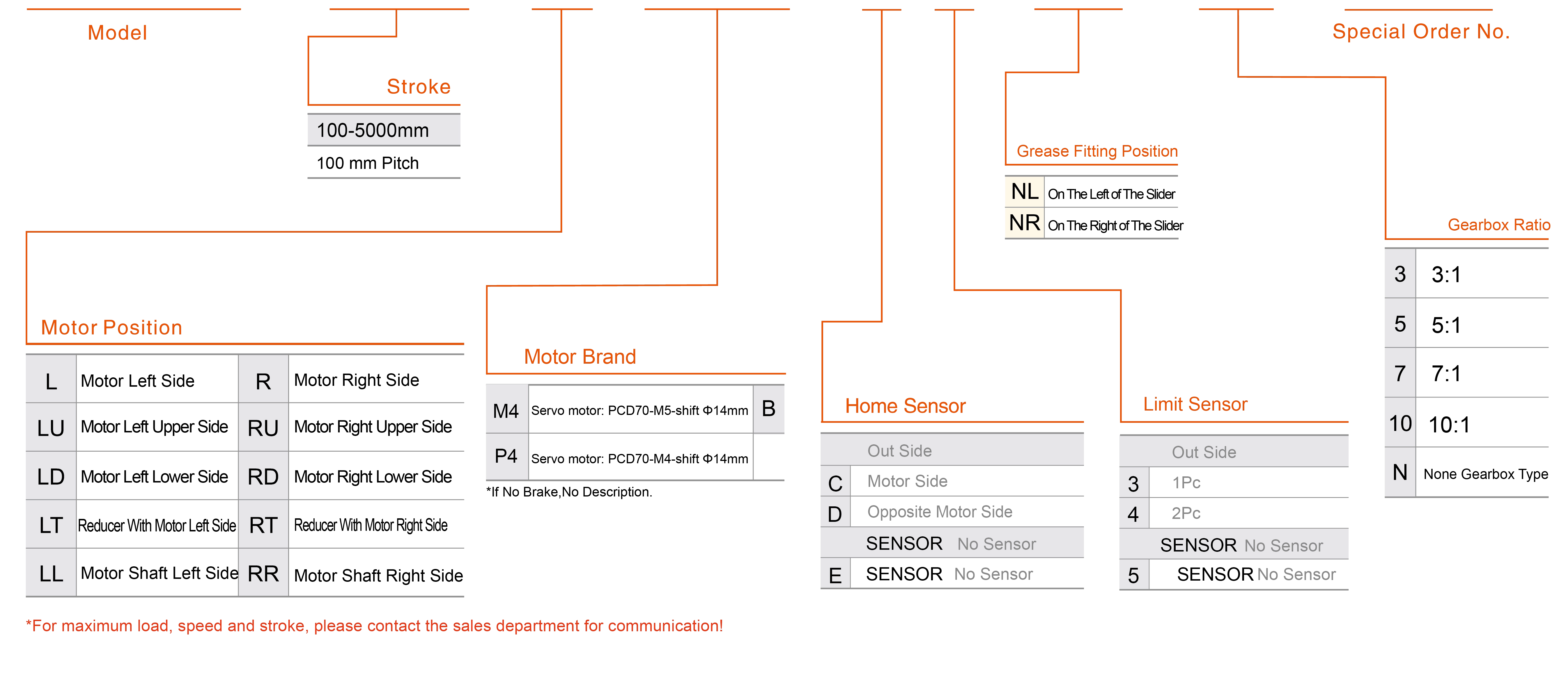 | Passo della corsa (mm) | Passo 100-5500 mm/100 mm | |||||