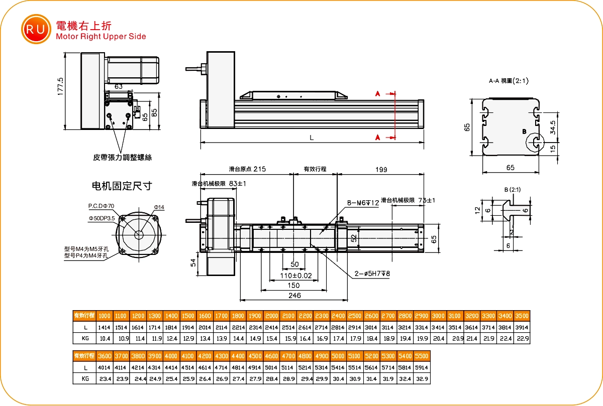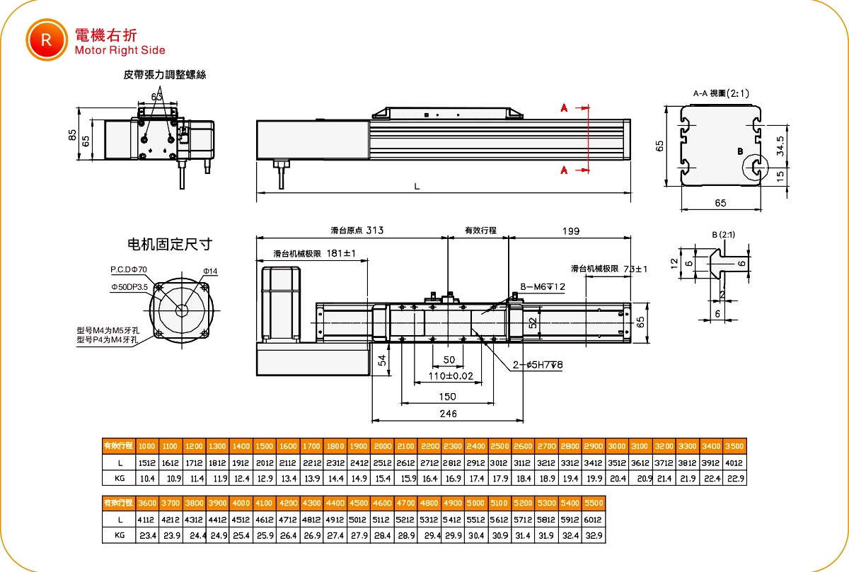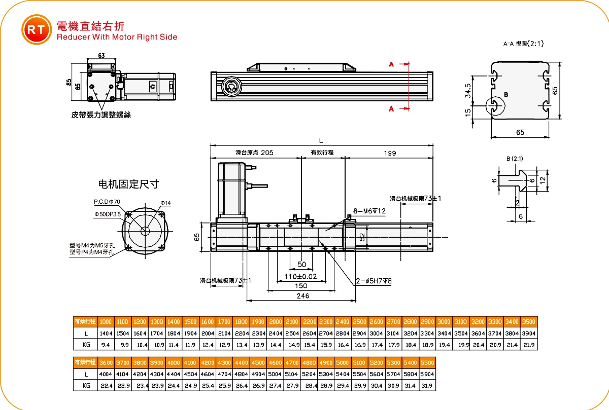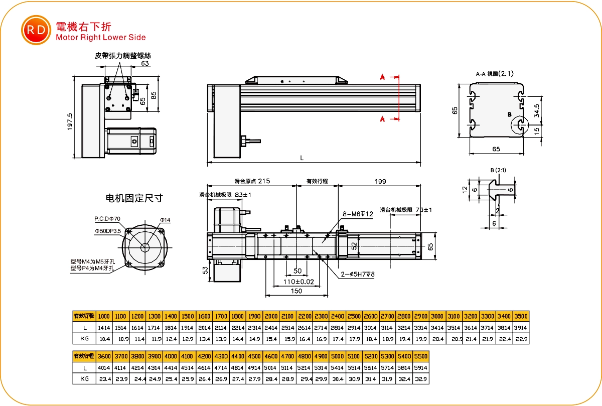 Posizione attuale:Casa > Prodotto > Attuatore a cinghia standard > Serie MKR > MKR65 > Riduttore con motore lato inferiore