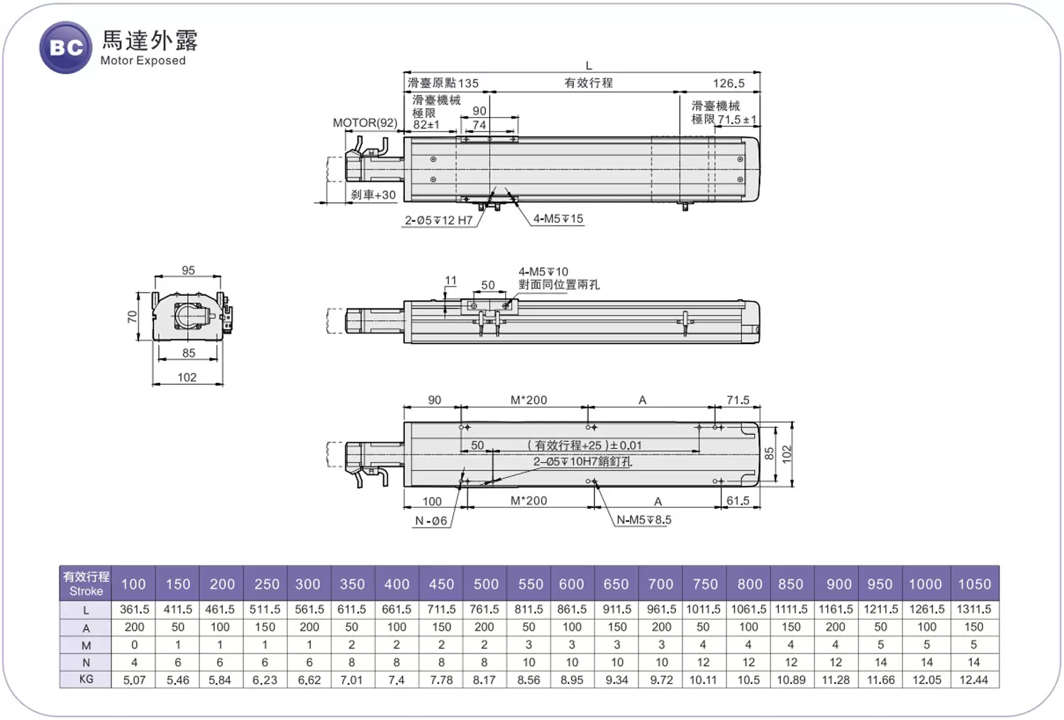 | Passo della corsa (mm) | Passo 100-1050 mm/50 mm | |||||