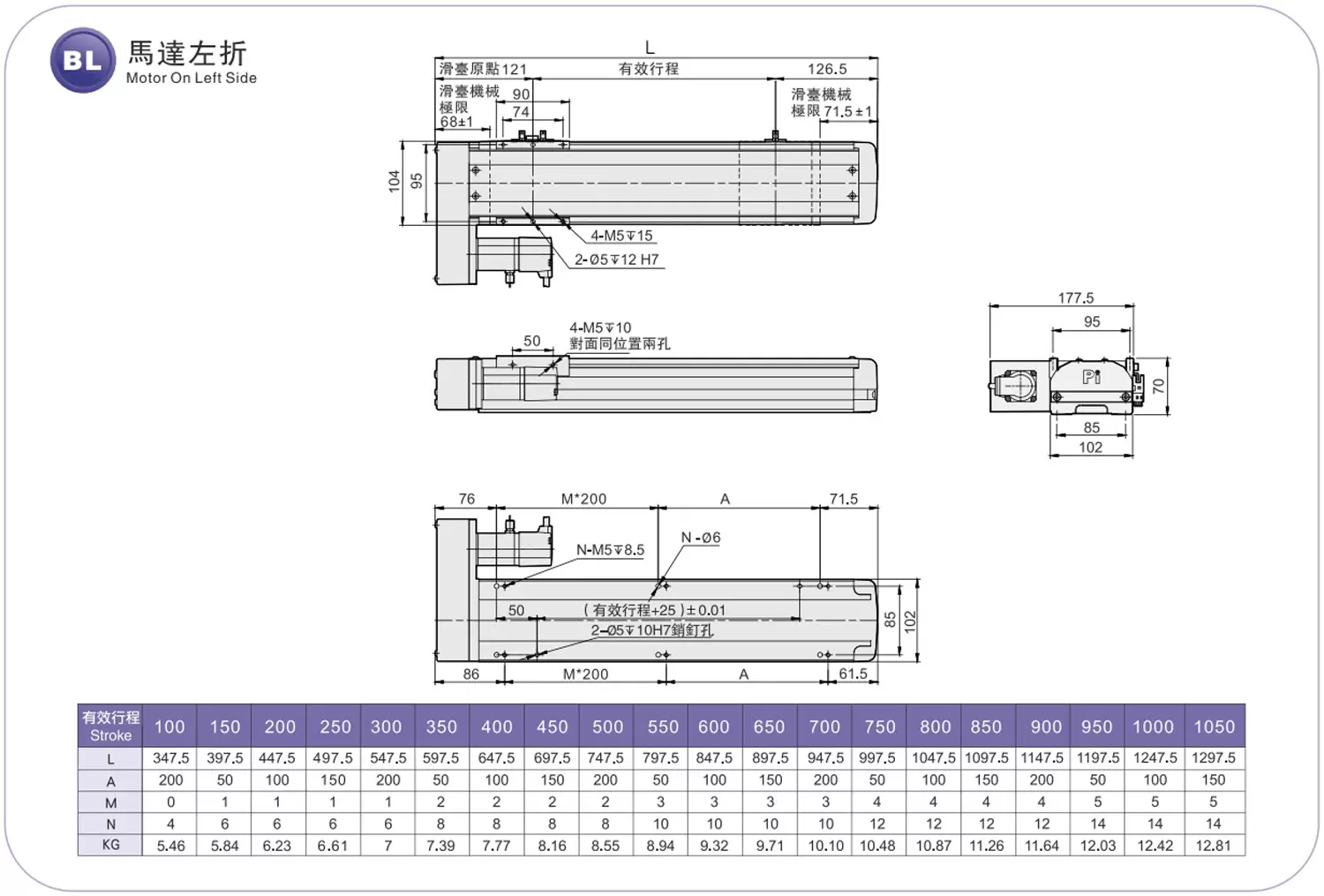 | Guida lineare ad alta rigidità (mm) | L12XA7.5 | |||||