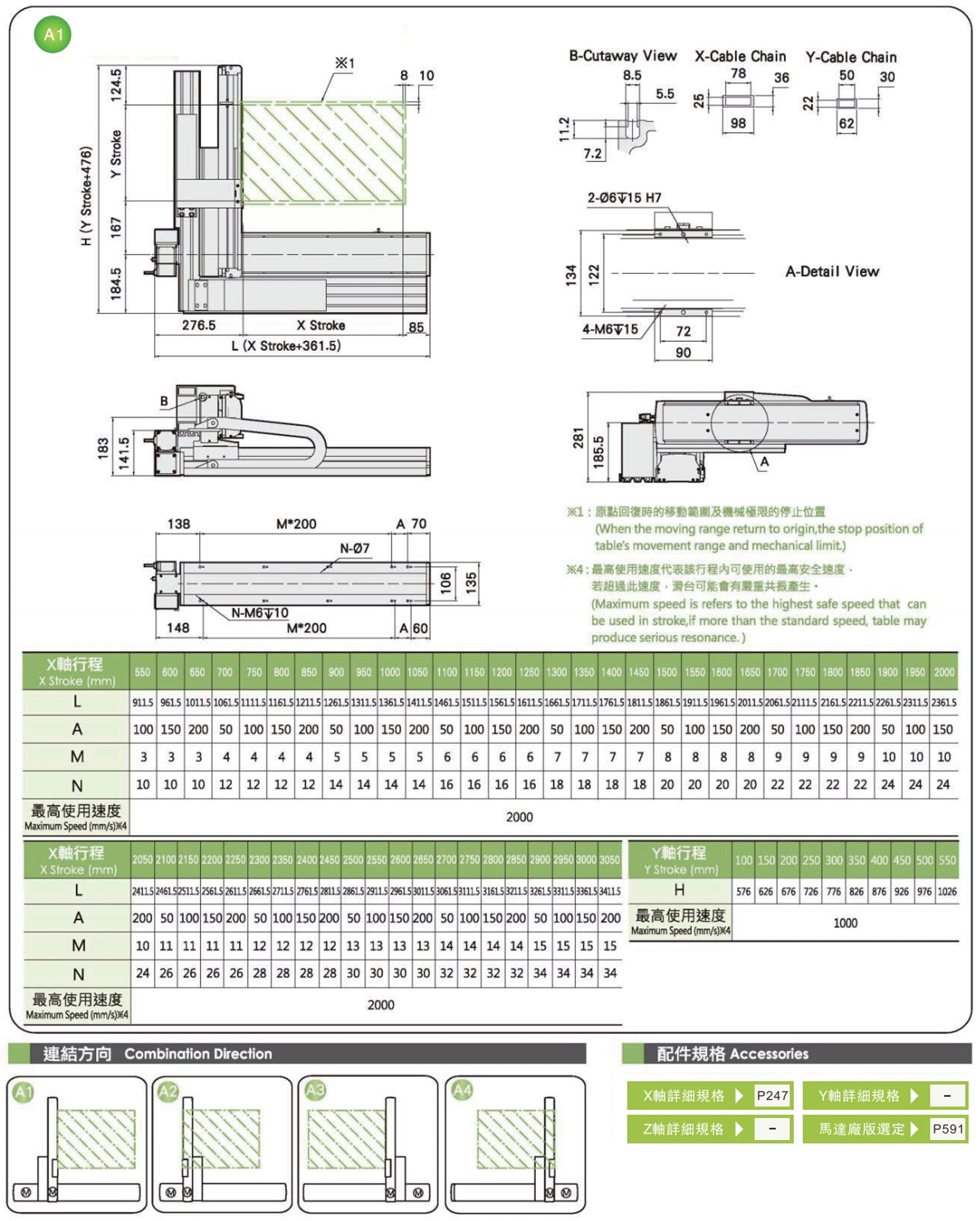 | Usa dove | Modalità guidata | Specifica | Combinazione | Numeri degli assi | Velocità massima (mm/s) | Corsa (mm) | ||||