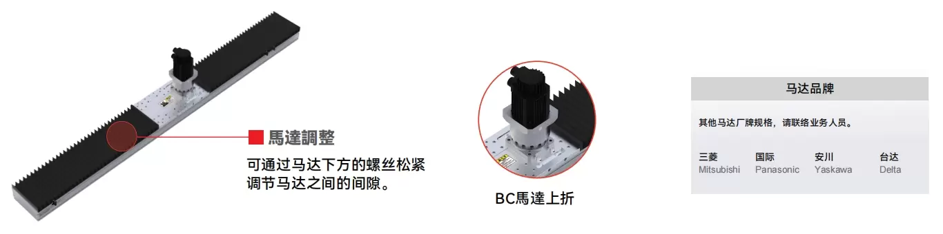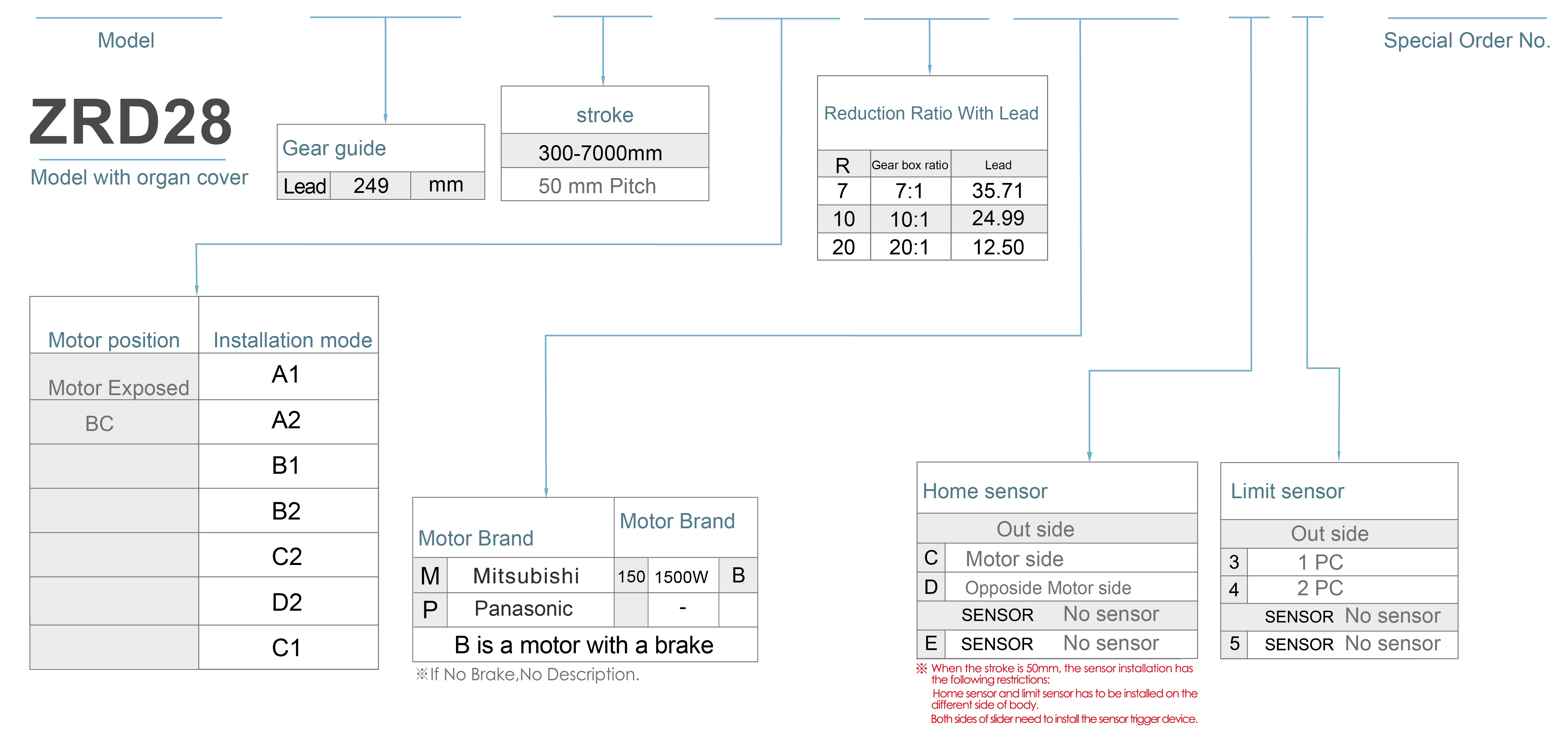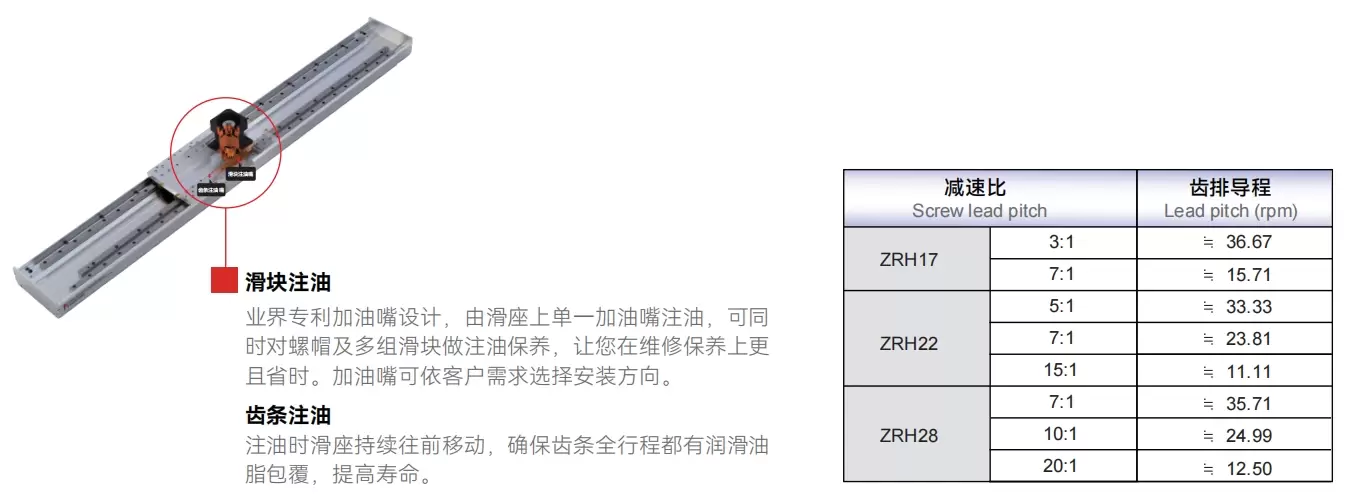 | Usa dove | Modalità guidata | Specifiche del modello | Potenza motore (w) | Larghezza (mm) | Ripetibilità (mm) | Il rapporto dei decrescenti | Dimensioni dell'ingranaggio elicoidale (mm) | Carico utile massimo (kg) | Velocità massima (mm/s) *1 | |||